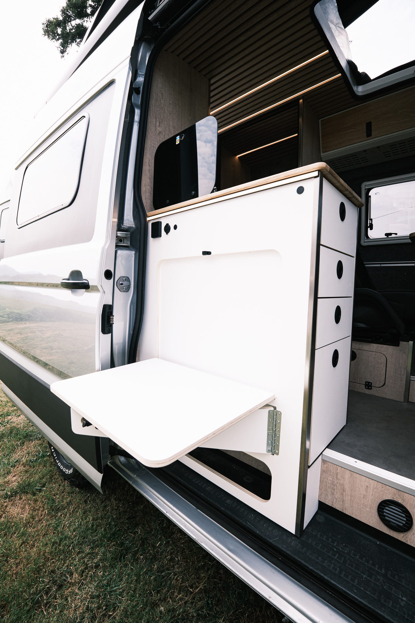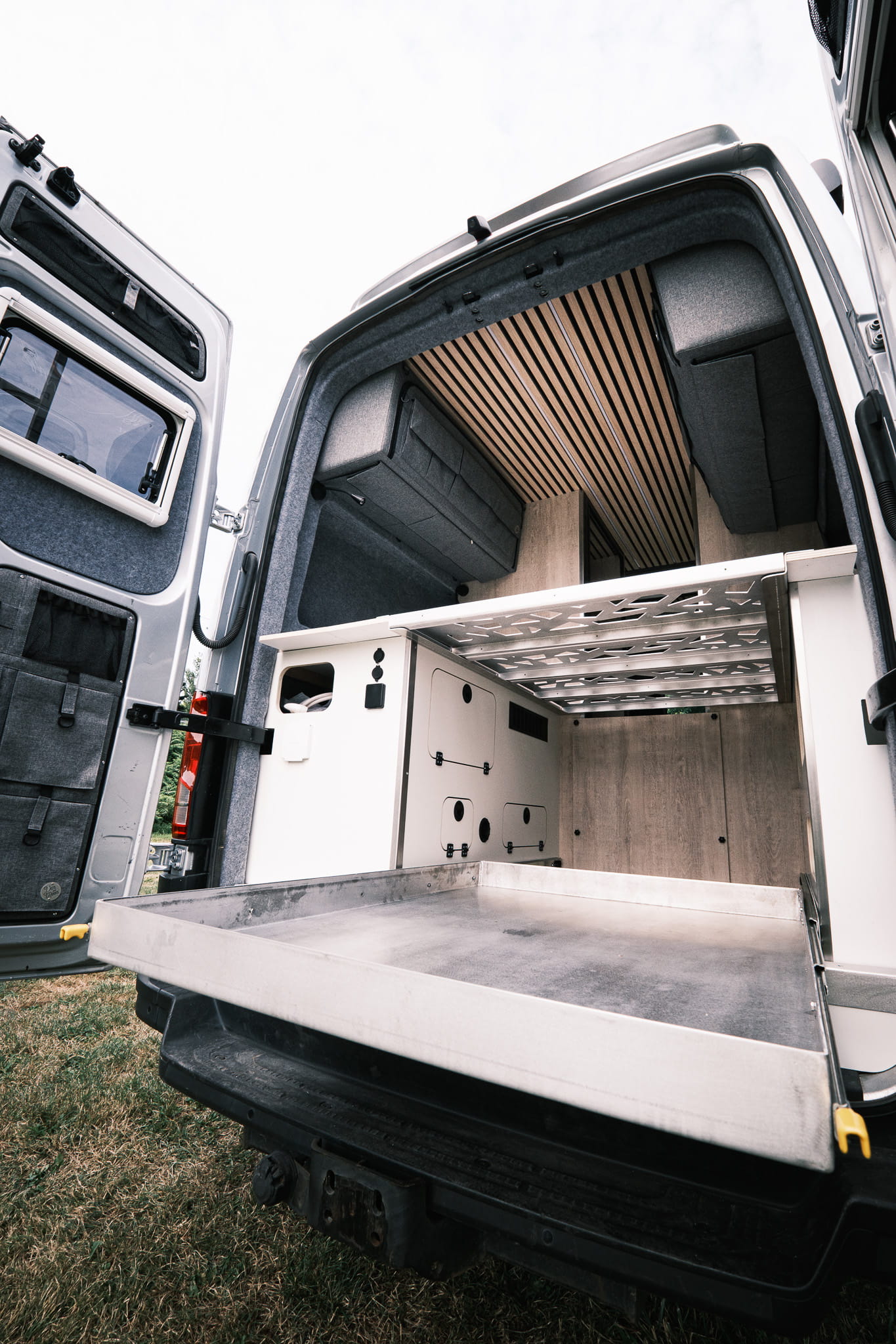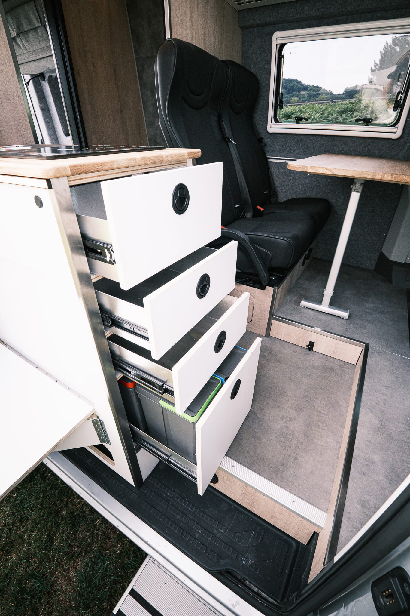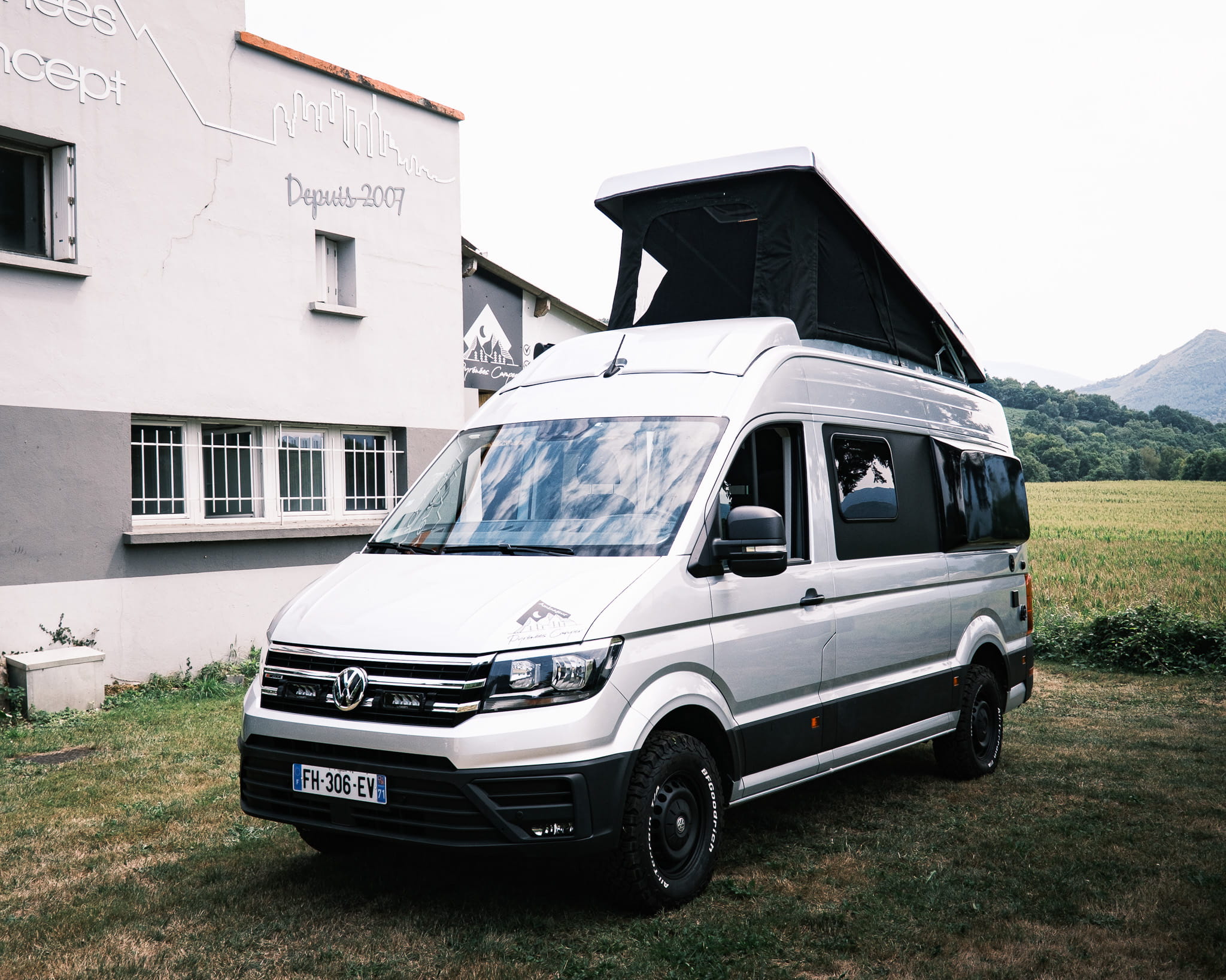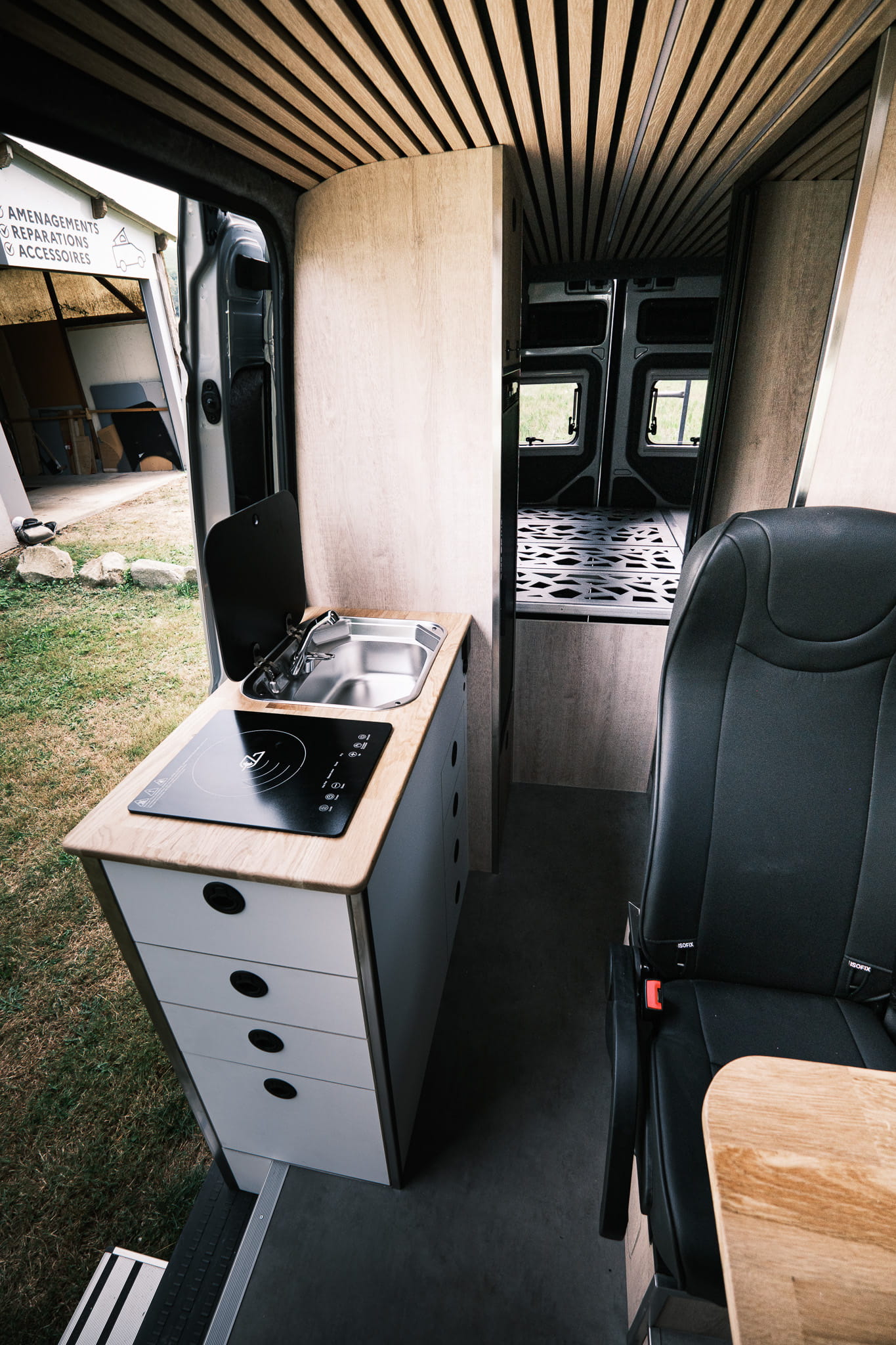 Fourgon aménagé pour 4 personnes (2 adultes et 2 enfants).